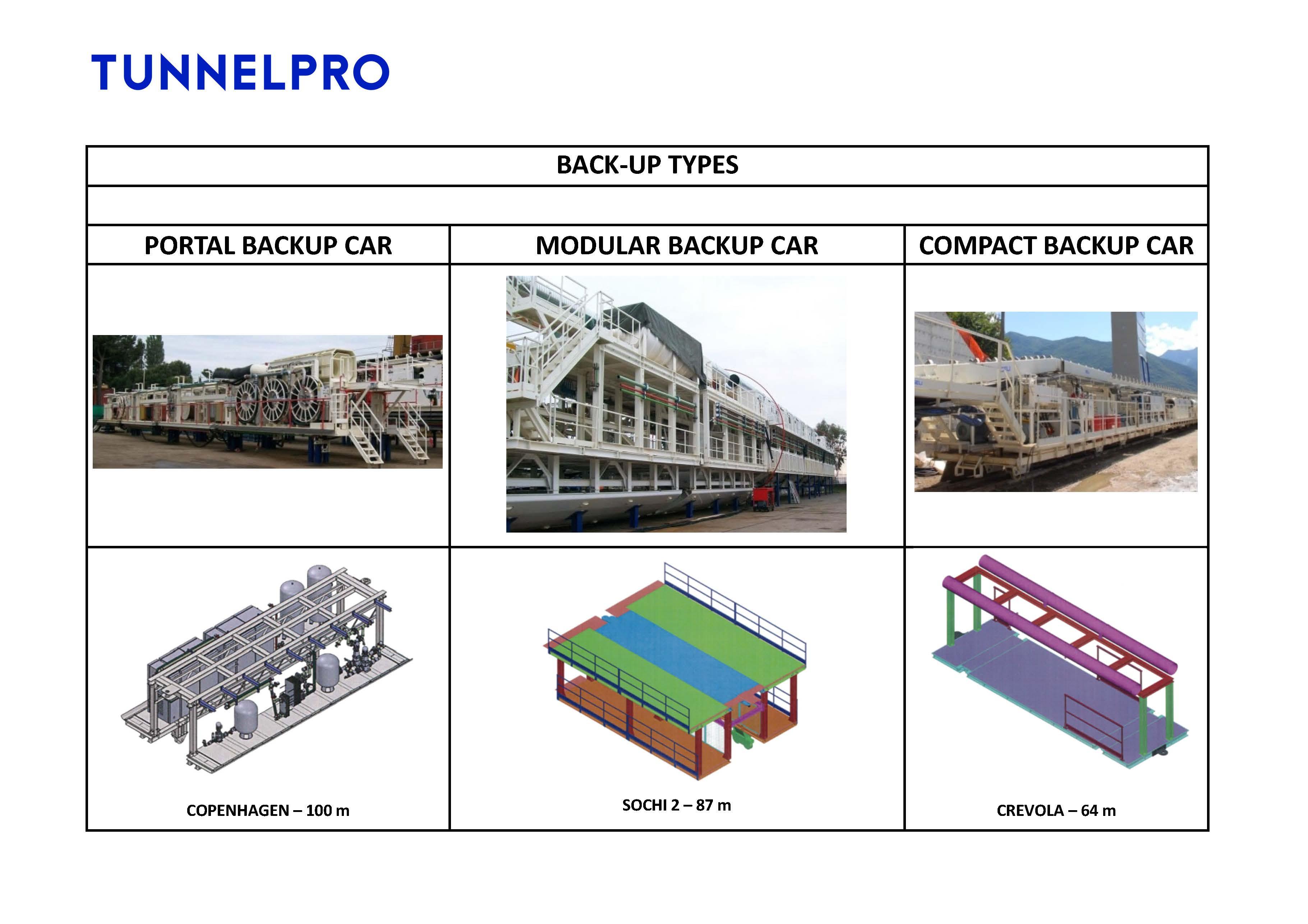 TunnelPro vanta decenni di esperienza nella progettazione e produzione di sistemi di back-up adatti a qualsiasi tipologia di TBM. Nel corso del tempo, abbiamo sviluppato diversi concetti di layout — modulare, compact, a portale e discreto — per rispondere alle più diverse esigenze operative e logistiche.